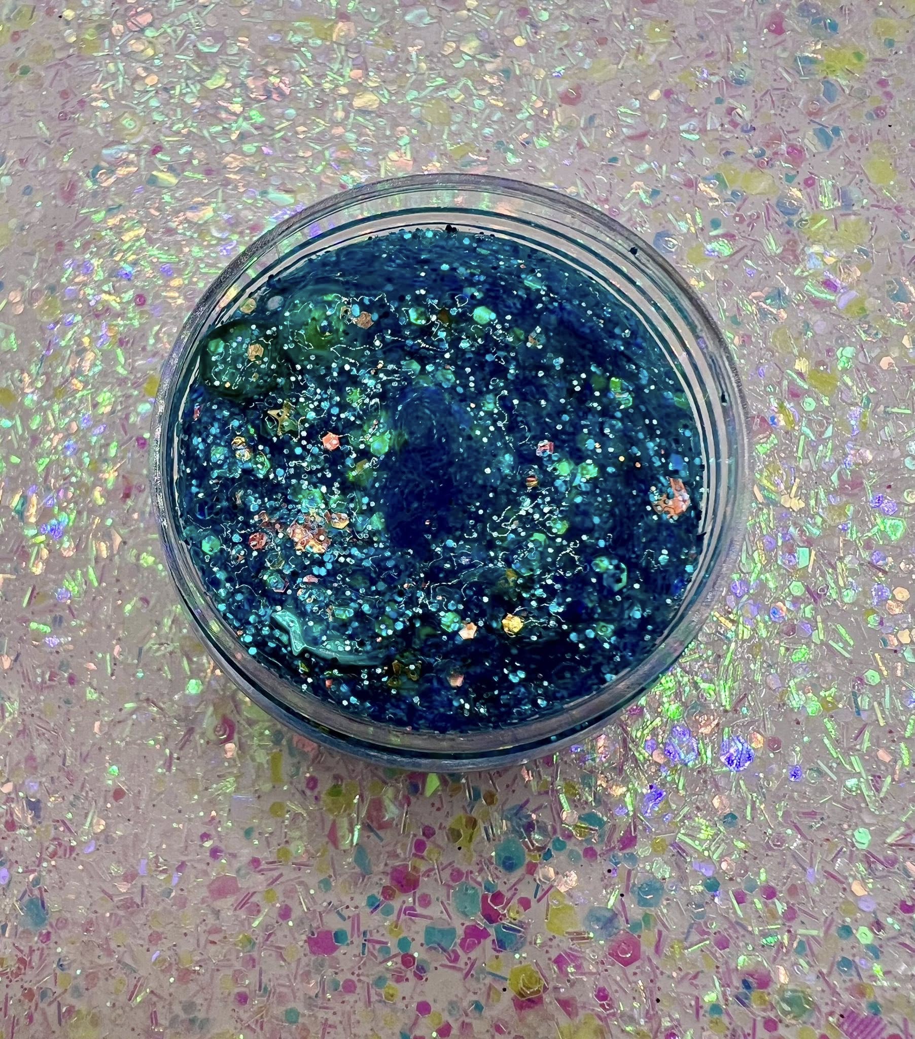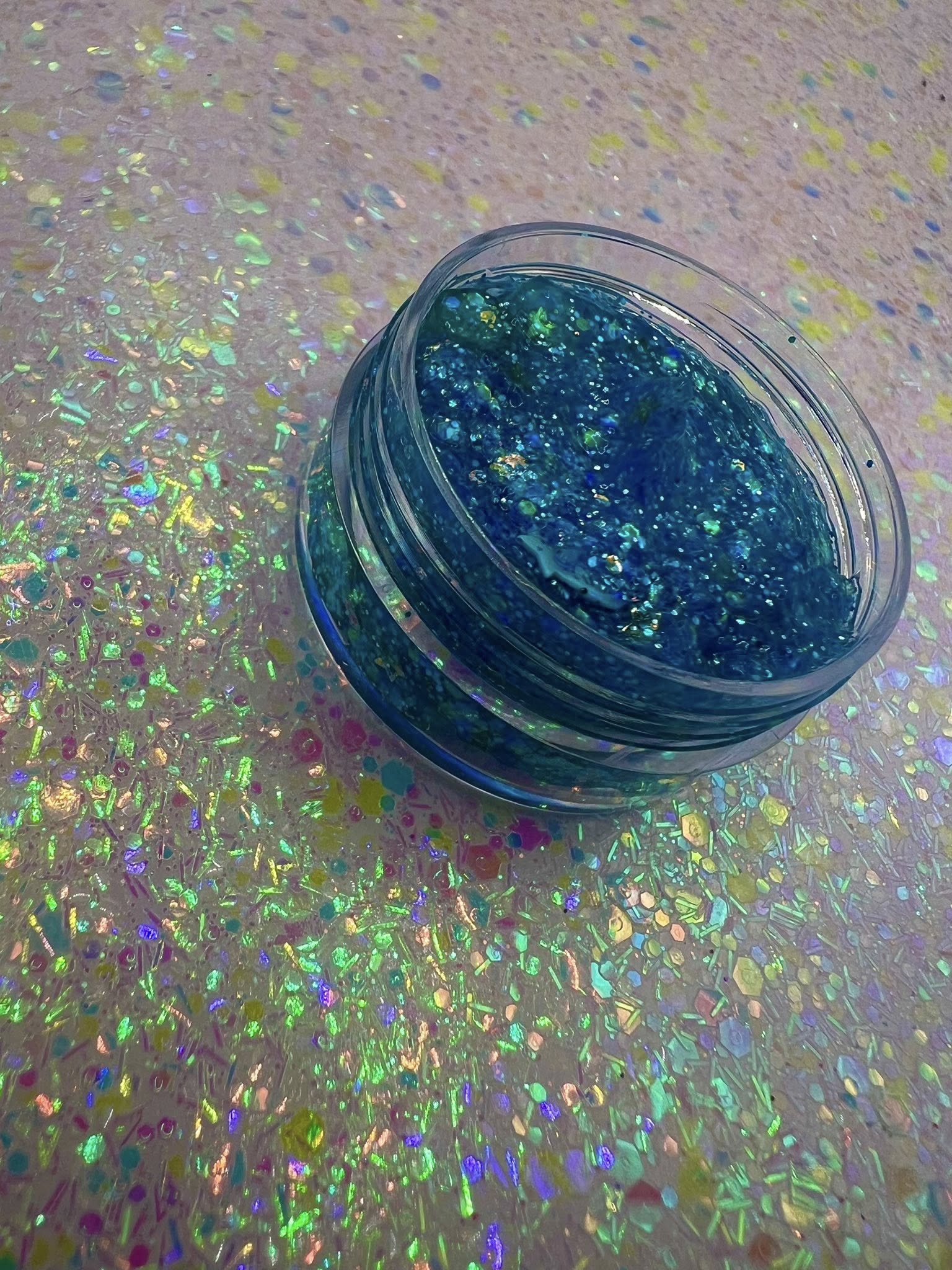 The perfect aquatic blend of blues with sea shell shapes. This is a small sample size jar. A sparkle-packed glitter gel made for hair, face and body—totally safe, super gentle, and sticks like magic with no glue or primer needed! External use only.Keep out of eyes. Keep container closed or product may dry out.…