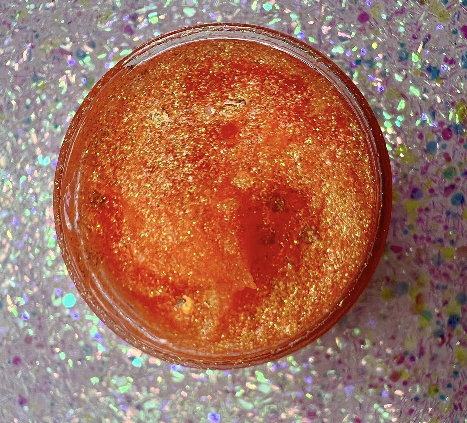 Orange glitter with a hint of gold. A sparkle-packed glitter gel made for hair, face and body—totally safe, super gentle, and sticks like magic with no glue or primer needed! External use only.Keep out of eyes. Keep container closed or product may dry out. Apply with fingertips or a small brush. Remove with water in…