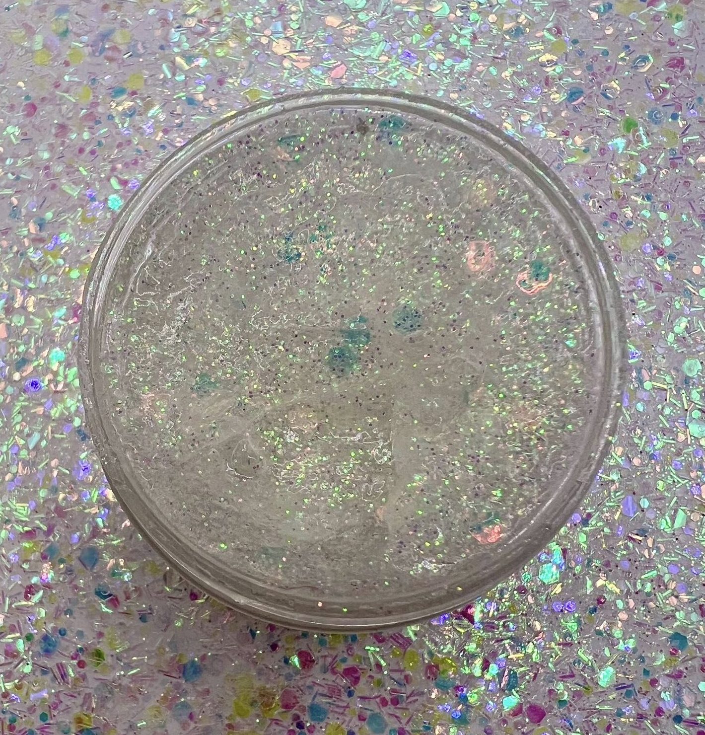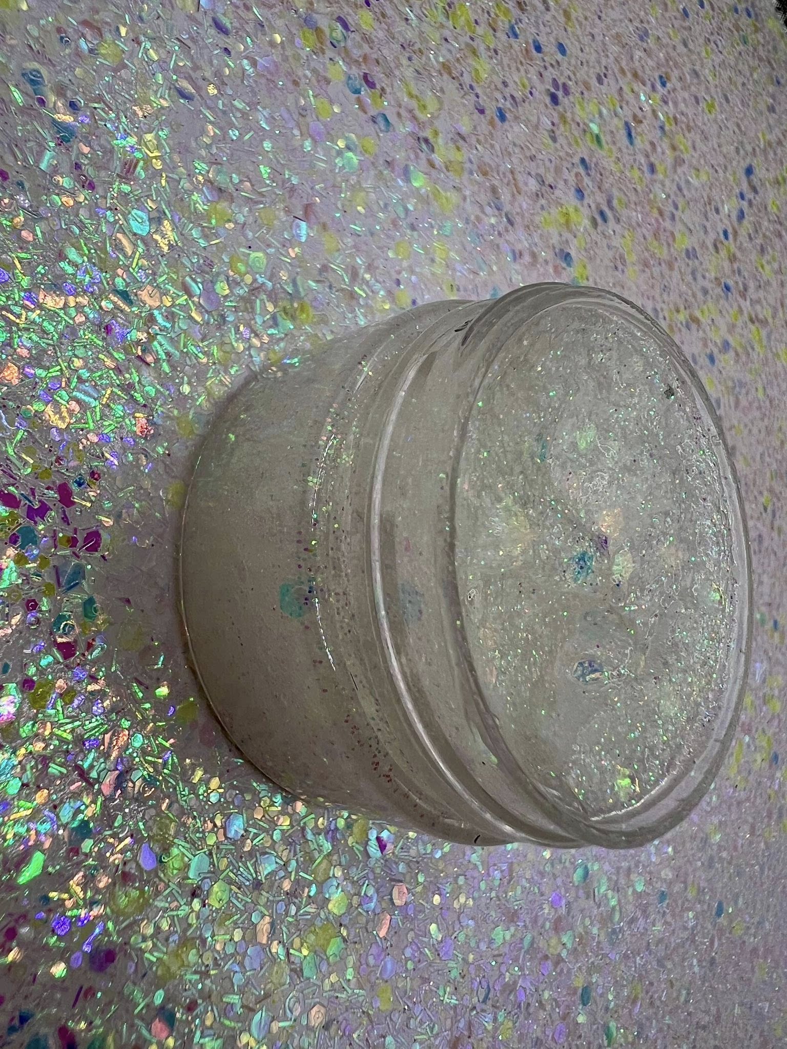 Unicorn Tears is a mix of iridescent fine and medium grade glitters creating a super sparkly shimmer.